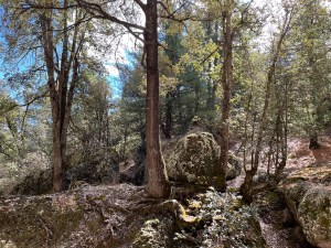 Sie hält vor einem grossen Tor und wir steigen aus. Auf etwa 200 Quadratmeter verteilt stehen wunderschöne kleine Ferienbungalows. Sie bedeutet mir mitzukommen und wir gehen einen schmalen Weg entlang, vorbei an seltsam geformten Steinformationen, bizarren Baumformationen und schroffen Felswänden.