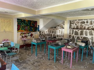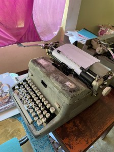 Nebenan ist ein Zimmer, ausgerüstet mit Schulbänken und uralten IBM Schreibmaschinen. Hier werden Mädchen zu Sekretärinnen ausgebildet. Das wird uns explizit so erklärt. Während der Pandemie waren es vor allem Mädchen die von der Schule ausgeschlossen waren. Warum auch immer und mit welcher Begründung, das erfahren wir nicht. Ich will das nicht kommentieren. Es ist einfach zu blöd.