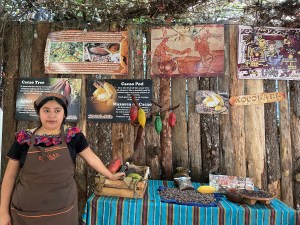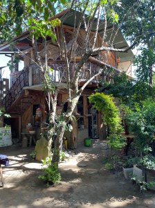 Wir unterhalten uns noch eine Zeitlang und dann müssen wir uns verabschieden. Wir verlassen hier zwei sehr spezielle Orte. Die Imkerfamilie und diese Schule, die versucht aufgerissene Lücken wieder zu schliessen. Spezielle Menschen, spezielle Orte. Fast widerwillig laufe ich hinter Mina wieder Richtung Ortsmitte. Wir besuchen noch einen kleinen Kakaofabrikanten und lassen uns zeigen, jetzt in einer Gruppe, wie aus der Kakaobohne, Kakao und dann Schokolade gemacht wird. Mit meinen Gedanken bin ich noch oben am Hügel bei den kleinsten Bienen der Welt und in der Schule. Kleine Biotope die Hoffnung machen.