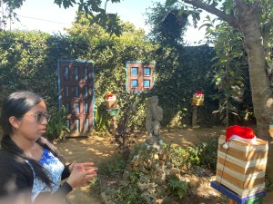 Die Bienenstation ist etwas ausserhalb von San Juan gelegen. Ein wunderbarer Hort der Ruhe mit wunderbarem Patio. Die Bienenhäuschen allerliebst mit roten Niklaus Mützen ausgestattet. Alles in Miniatur. Die Bienen, die kleinsten der Welt, nicht grösser als Motten, und die Bienenhäuschen. Ich denke, Kunststück stechen die nicht. Wenn der Stachel schwerer ist als die Biene.