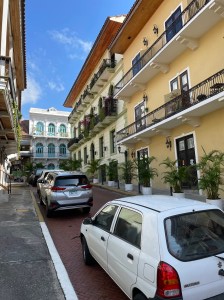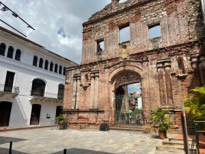Ich nehme es vorneweg. Panama City ist nicht mein Fall. So ganz genau kann ich gar nicht sagen warum. Eine Super Skyline und eine sehr kleine aber sehr hübsche Altstadt, die Casco Antiquo. Vollgespickt mit alten Kolonialbauten. Kleine stilvoll eingerichtete Shoping-Cafés, wo nebst sehr gutem Kaffee und Snacks auch T-Shirts, Panama-Hüte, und vieles mehr angeboten wird. Auch der Mercado artesanos fehlt nicht. Die Altstadt liegt am Meer und auf der anderen Seite der sehr grossen Lagune kann die Skyline bewundert werden. Das besondere an Casco Antiquo ist, dass von vielen alten Kolonialbauten nur noch die Mauern stehen. Diese werden gestützt und so am totalen Einsturz gehindert.