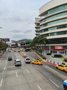 Es gibt dort nämlich einen wunderbaren Zug der von Guayaquil am Meer, hoch nach Quito auf 3500m in die Anden führt. Also flog ich via Panama City nach Guayaquil. Und das war dann keine gute Idee. Der Zug nach Quito fährt seit der Pandemie nicht mehr und in Peru wurde es nicht besser, im Gegenteil. Also, jetzt bin ich hier in Guayaquil und es gefällt mir gar nicht. Was mir sofort auffällt hier, es ist alles hinter Gitter. Die kleinen Läden haben alle ein Stahlgitter vor der Tür. Mein Mineralwasser wird mir doch die Gitterstäbe durchgereicht. Die grossen Geschäfte haben alle einen oder zwei bewaffneten Türsteher. Ja, es scheint hier ziemlich wenig sicher zu sein.