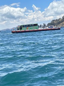 Am nächsten Tag habe ich einen Ausflug an den Titicacasee geplant. Bin mir nicht ganz sicher, schreibt man Titicacasee mit zwei c oder zwei k. Habe es hier am selben Ort, dort wo wir dann über den Fiord verschifft wurden, einmal mit k und einmal mit c geschrieben gesehen. Ich halte mich an das c. Sieht schöner aus. Das Ziel am See heisst Copacabana.