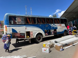Laut Fahrplan im Internet und auch gemäss dem Plan der in meinem Hotel hängt müsste der Zug von Uyumi nach Tupiza dreimal die Woche fahren. Das war vor der Pandemie. Jetzt stehe ich vor dem Bahnhof und erfahre von einem Bahnbeamten, der mich nicht in den Bahnhof rein lässt, dass der Zug nur noch ein mal in der Woche fährt. Immer am Dienstag um sechs Uhr in der früh. Dienstag war gestern. Tja, und weil eine ganze Woche in Uyumi keine reizvolle Option ist, bleibt nur die Ochsentour mit dem Bus.