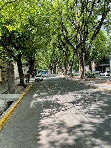 Zweimal ging ich dann am Abend in Mendoza an der Avenue San Martin in zwei schöne Lokale unter die Bäume sitzen. Das Essen war gut und der Malbec sowieso. Es gab viele solche Wein und Grilllokale unter den Bäumen. Also ja, Mendoza ist in jeder Hinsicht eine sehr schöne Stadt.