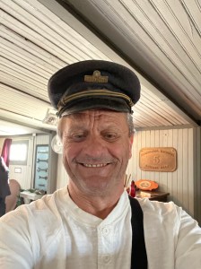 Im Bahnhofsgebäude ist ein kleines Museum integriert und dort habe ich auch die dämliche Mütze gefunden. Ich konnte nicht Wiederstehen und habe mir das 100 jährige Ding aufgesetzt. Nachdem die Lokomotive Publikumsgerecht vor die Wagen gekoppelt wurde ging dann die Fahrt los.